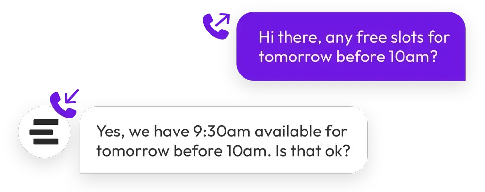 Our AI continues talking to your lead via text on your behalf. Trained to answer their questions, book appointments & more.